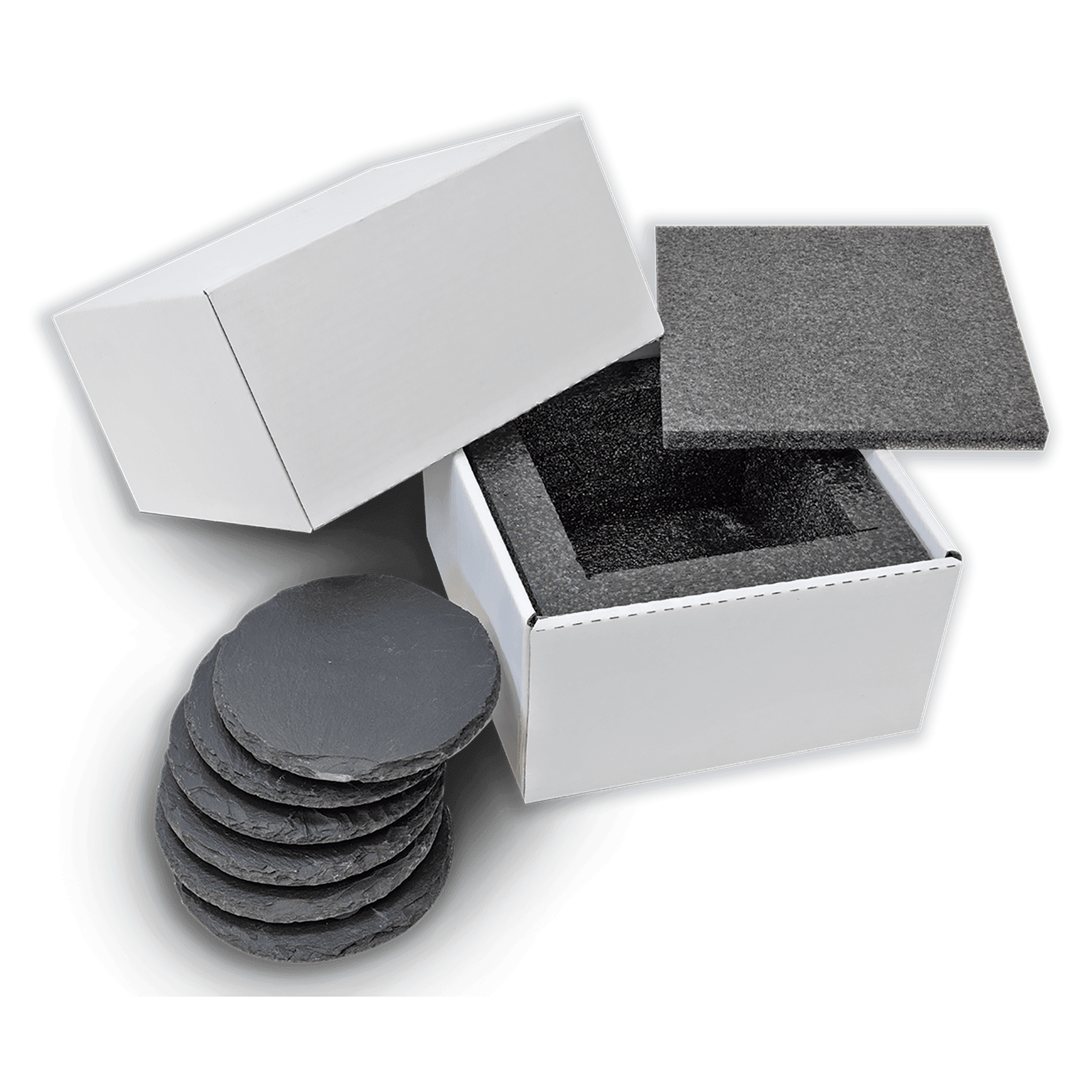 These laserable Slate coaster sets make great corporate or personal gifts!Because they are genuine slate, a natural material, each piece can vary slightly in shape, size, and color so no two will be absolutely identical. Includes Foam Pads to protect your surfaces, and boxed in EVA Foam for added protection.